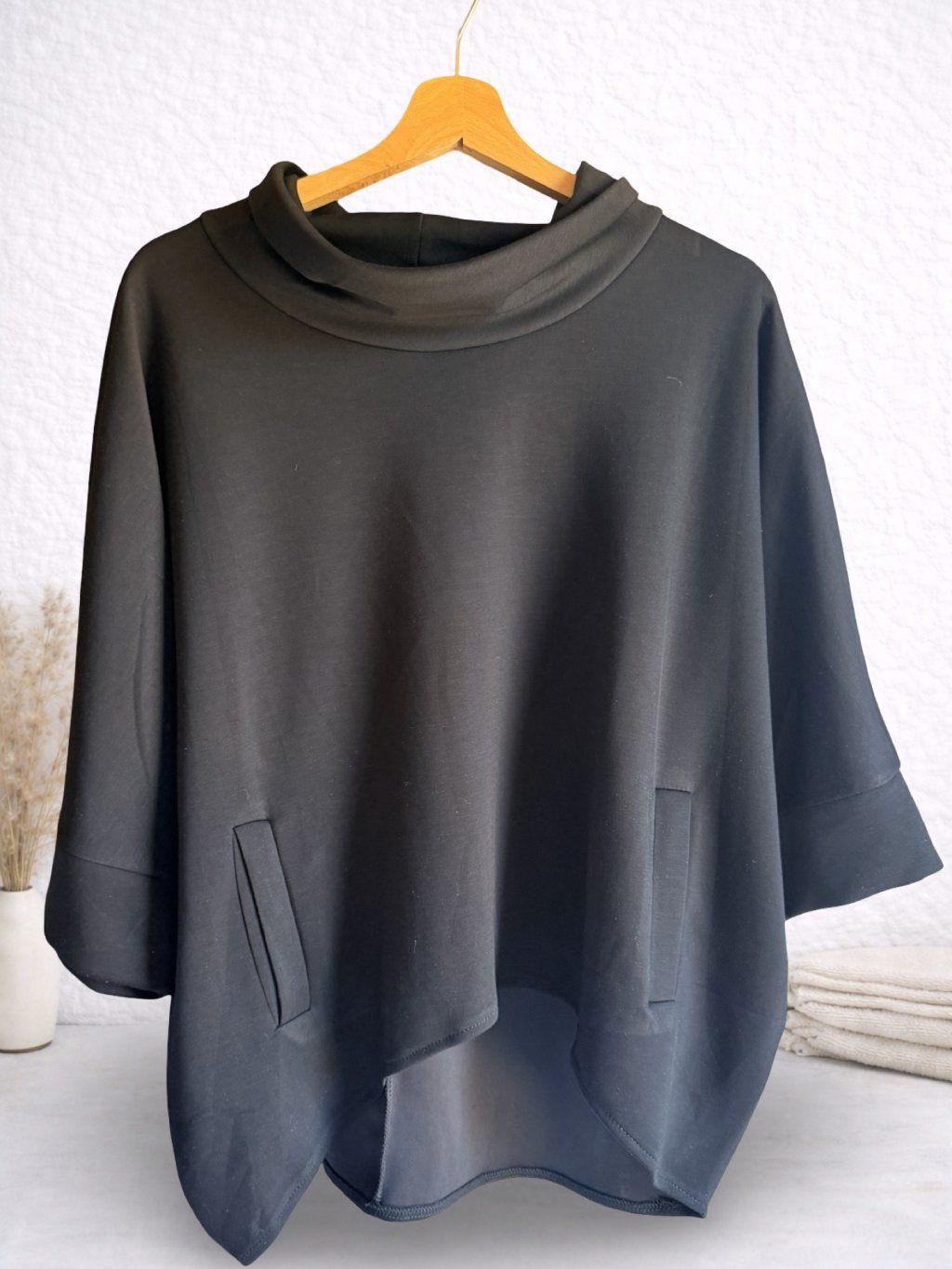 ASYMETRICKÁ MIKINA S ROLÁKEM - ČERNÁ