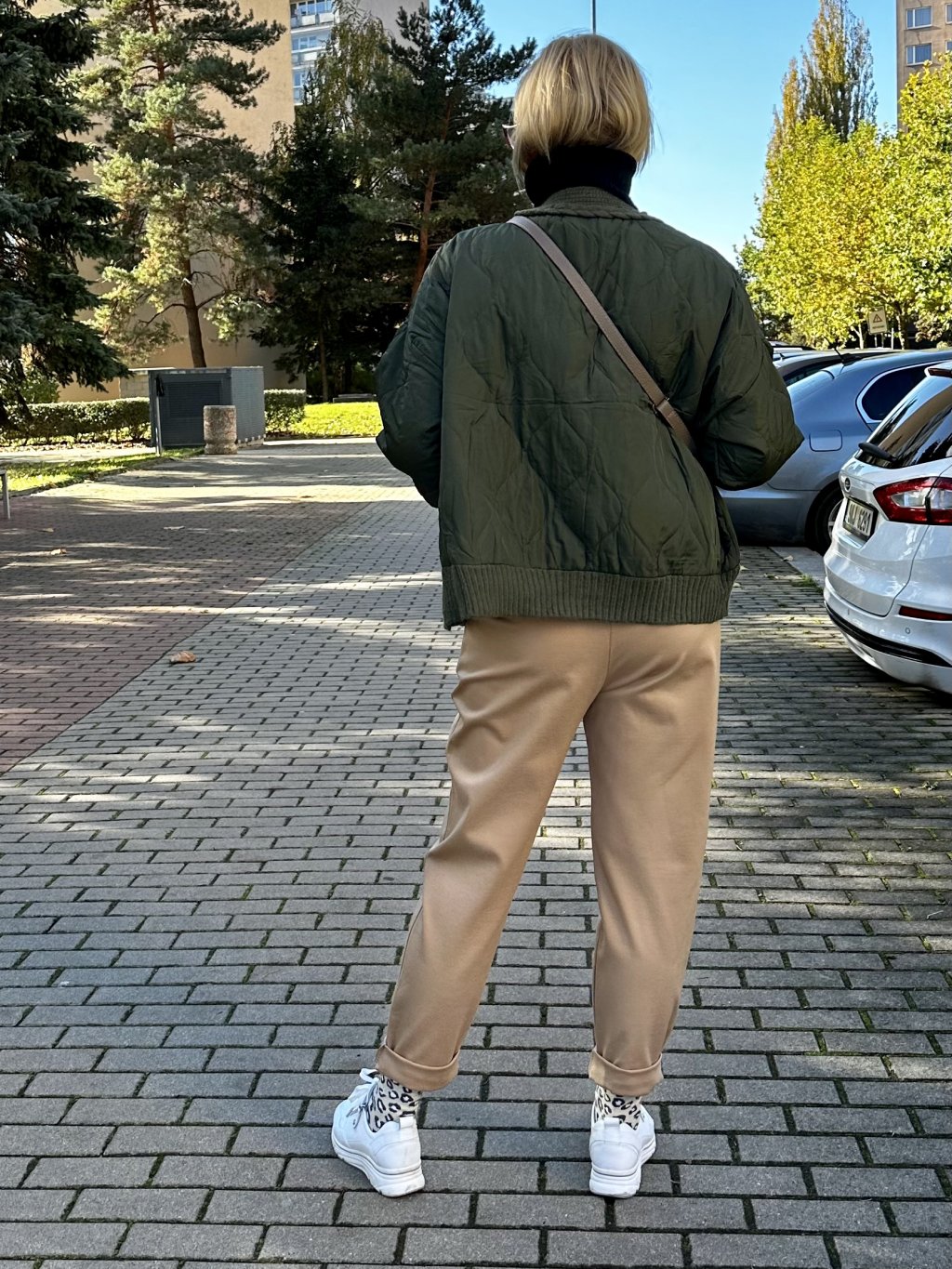 Ležérní strečové kalhoty s gumou v pase, kapsy na předním díle.