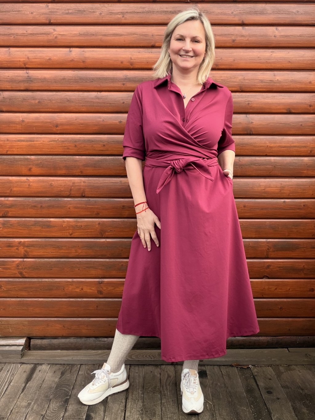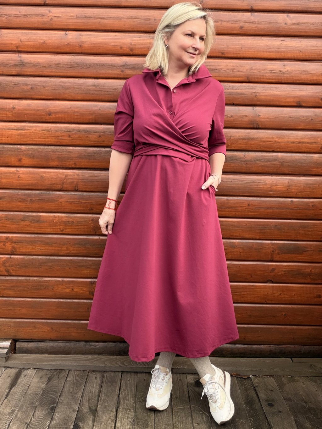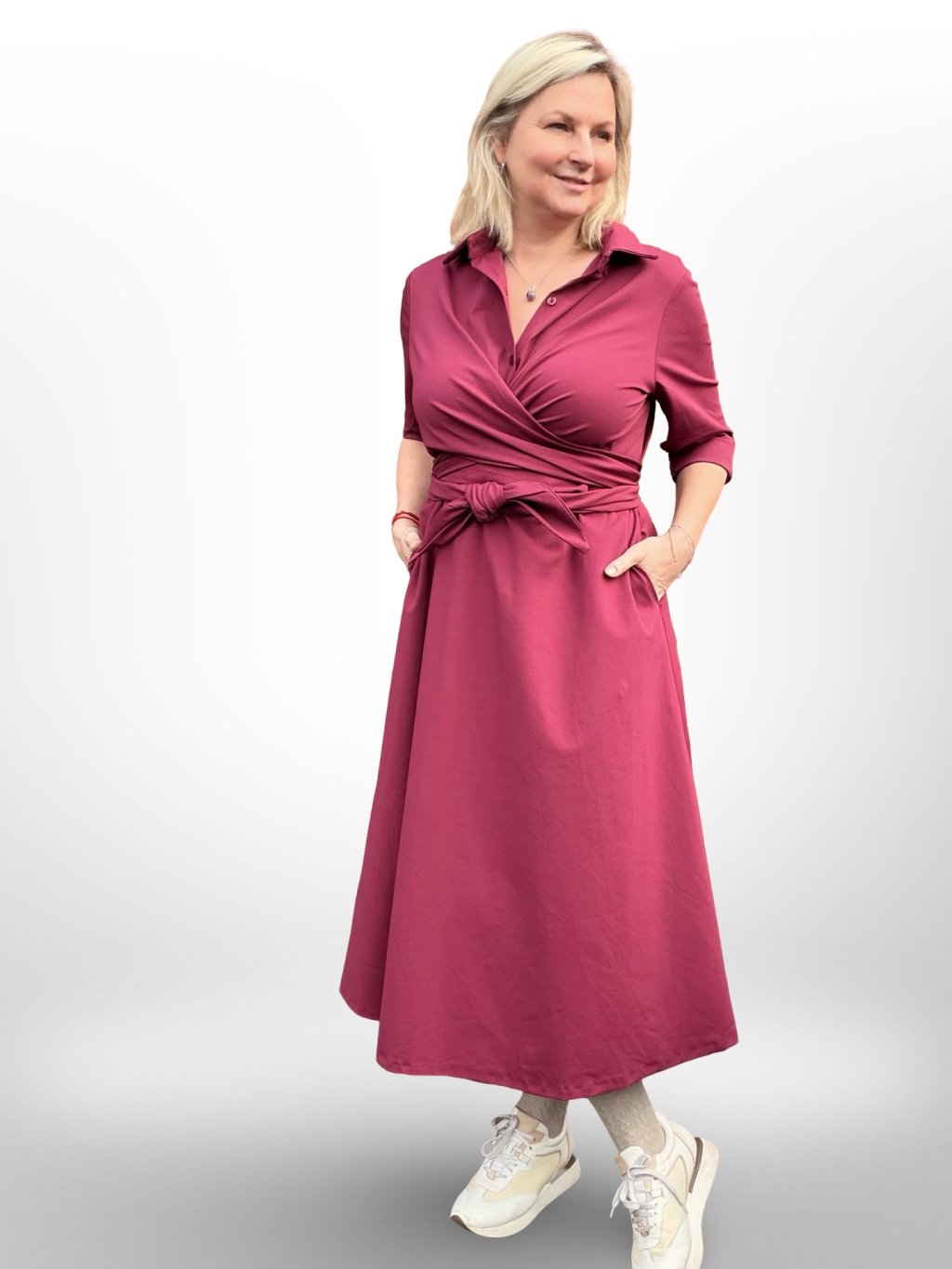 PŘÍJEMNÉ ŠATY S EFEKTNÍM VÁZÁNÍM, MATERIÁL PUNTO ELEGANTNÍ A PŘESTO PRUŽNÝ, ZAJIŠŤUJE POHODLNÉ NOŠENÍ