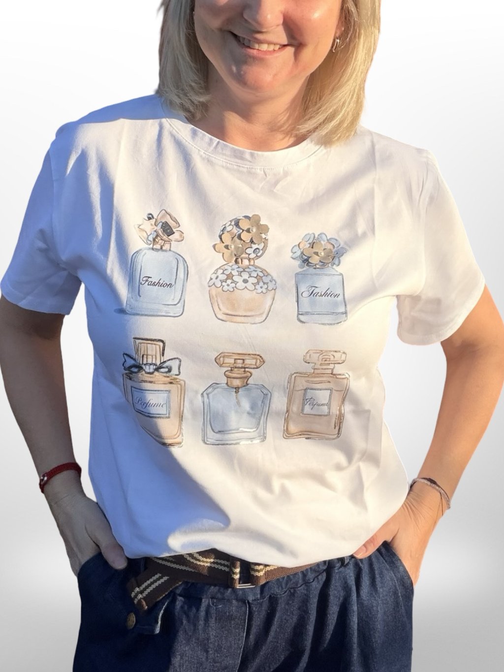 TRIČKO ZDOBÍ POTIS A APLIKACE KVÍTKŮ