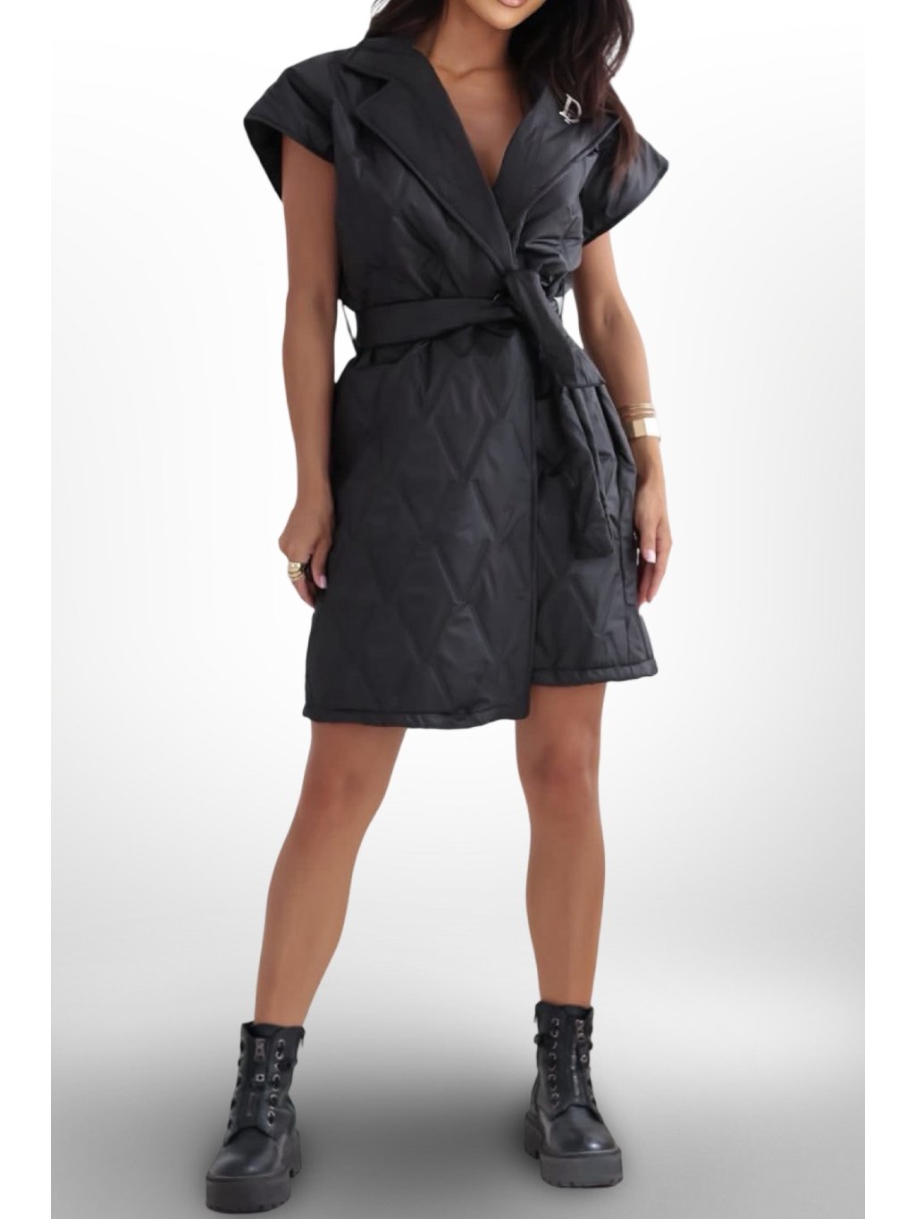 ELEGANTNÍ LEHKÁ PŘECHODOVÁ VESTA S EFEKTEM PROŠÍVÁNÍ, ZAPÍNÁNÍ NA 1 KNOFLÍK + PÁSEK. KAPSY JSOU SKRYTÉ V BOČNÍCH ŠVECH.