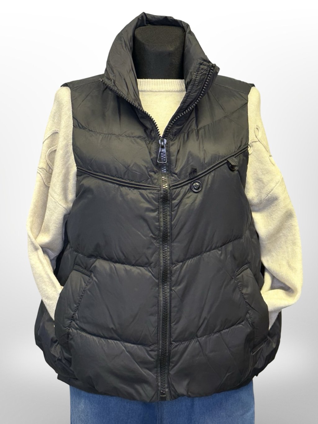 PŘÍJEMNÁ VESTA SE STOJÁČKEM S KACHNÍM PEŘÍM, KAPSY NA PŘEDNÍ STRANĚ, ZAPÍNANÍ NA ZIP